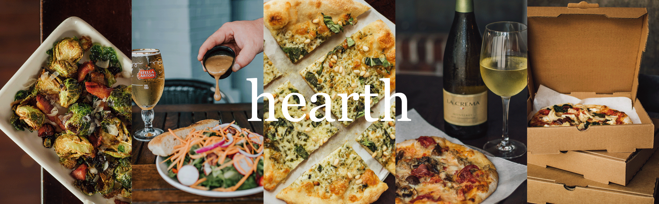 Welcome to Hearth Pizza Tavern: a place like no other. All fresh, oven fired pies with a wide selection of beers, wines, and spirits. All of our food is fresh and made in our own kitchen, right down to homemade dough, cheeses, and toppings. Top shelf food with a tavern feel. Cheers! Enjoy what we like to call “Hearth Fired Happiness.”